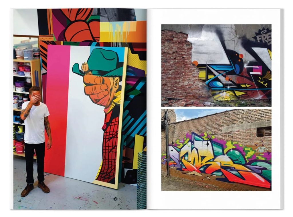 POSE, the moniker of artist Jordan Nickel, showcases the transformation of a renowned graffiti writer into an acclaimed painter. His work, combining sign-painting, Pop Art, printmaking, and graffiti, captures the essence of 21st-century hypermodernity. POSE has reconnected with his graffiti roots, infusing his art with newfound authenticity. Influenced by Roy Lichtenstein, his creations reflect modern consumerism and street culture. POSE’s artwork, whether paintings or murals. seamlessly merge polished graphics with spontaneous creativity, balancing commercial success and personal fulfillment. His journey is characterized by a profound appreciation for his craft and a genuine reflection of his life experiences. (from BTS)
