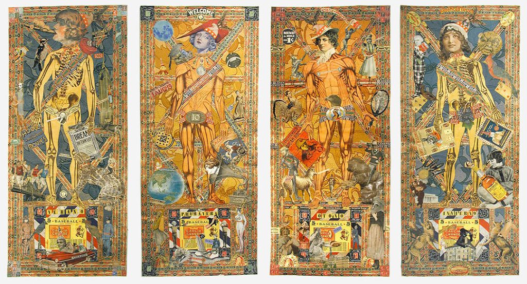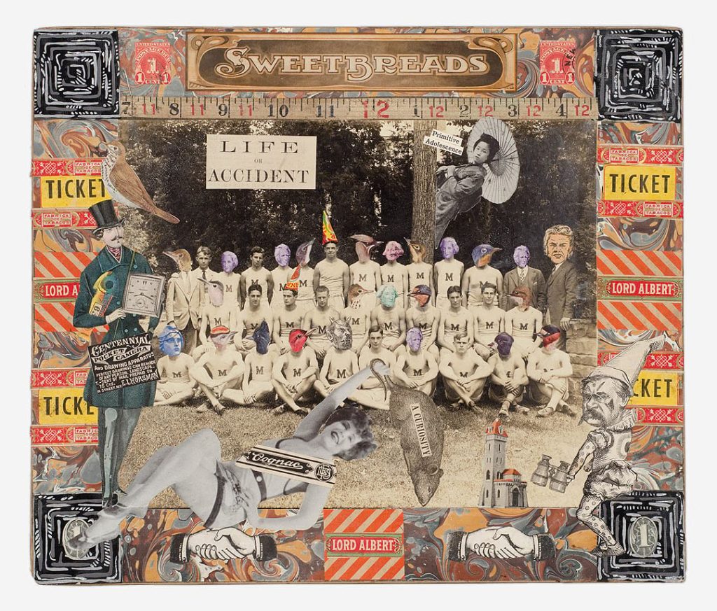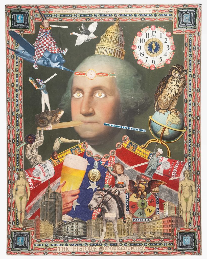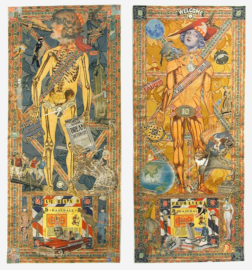 A self-appointed “artist, healer, and man,” Felipe Jesús Consalvos worked for much of his life as a cigar roller, and he extrapolated the vernacular tradition of cigar band collage to a sophisticated practice. The Havana-born artist immigrated to Miami around 1920, eventually settling in New York and then Philadelphia. His obsessive body of work—over 750 surviving collages on paper, found photographs, musical instruments, furniture, and other unexpected surfaces—was discovered in 1980 at a West Philadelphia garage sale. Consalvos’ practice parallels and in some cases prefigures certain contemporaneous developments in Surrealist, Dada, and Futurist and Pop collage, and even poetry. His collages share the biting socio-political satire and absurdist impulse of Dadaists like Kurt Schwitters and Max Ernst, along with abstruse mysticism. (from editor)