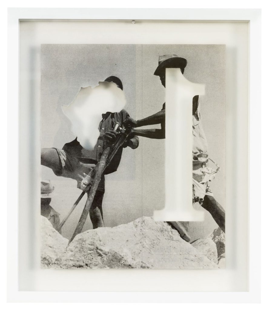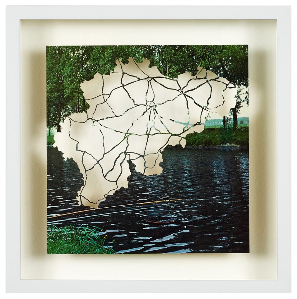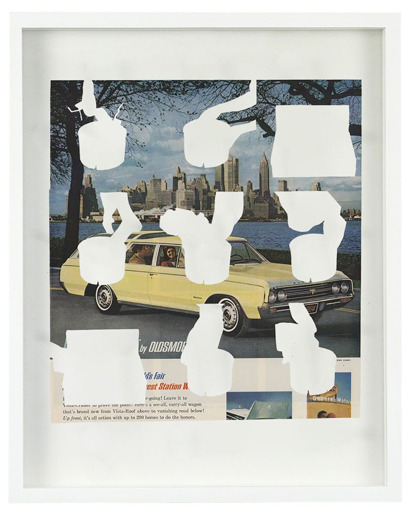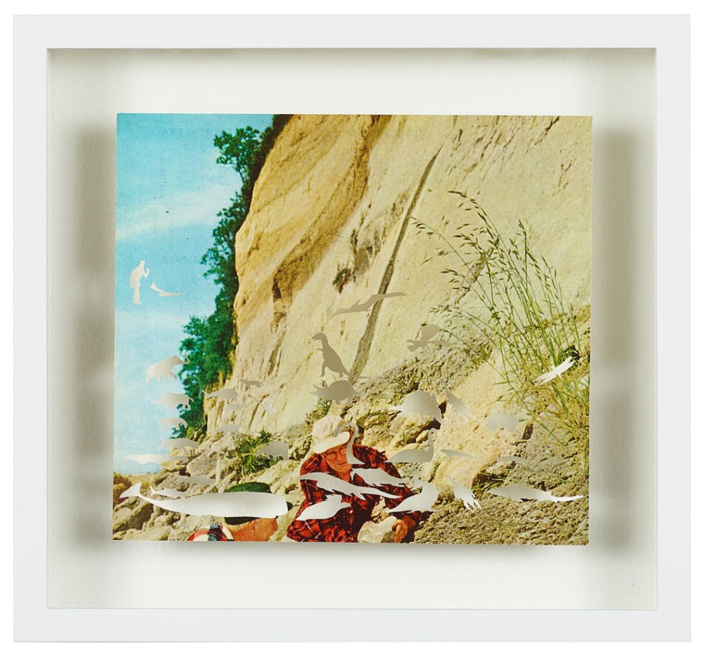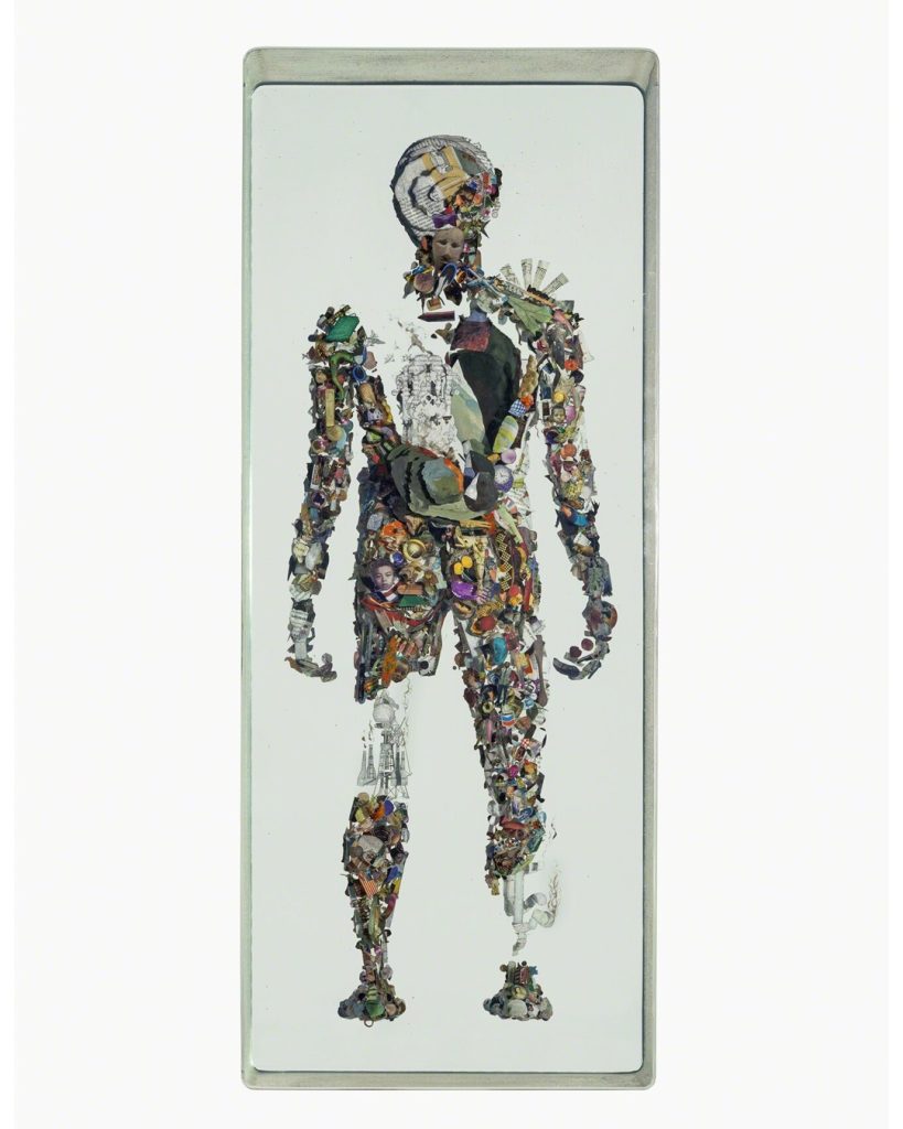 Dustin Yellin describes his inventive sculptures as works of “frozen cinema.” He embeds streaks of paint and a riot of tiny images snipped from old magazines, art history books, encyclopedias, dictionaries, and found notebooks into sheets of laminated glass. The collage elements coalesce into intricate, shape-shifting narrative scenes, human figures, or isolated natural forms. Yellin’s sculptures can feel once contemporary and ancient, like fossilized organisms preserved in amber. (from editor)